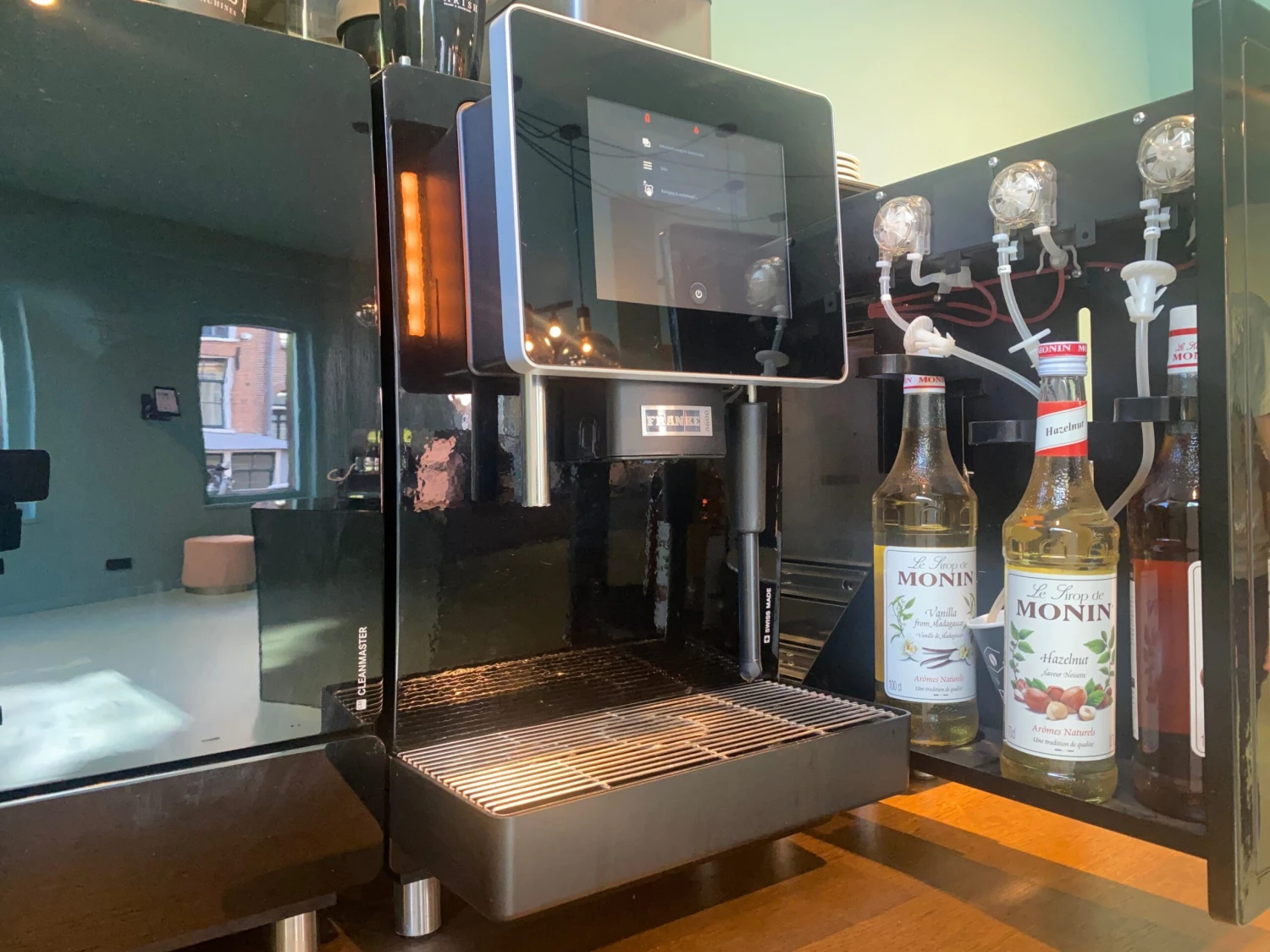Koffie, espresso (doppio), ristretto cafè creme, cafè latte, flat white, cappuccino, latte macchiato, koffie in combinatie met gekozen poeder,… en alles met een siroopsmaak indien gewenst |