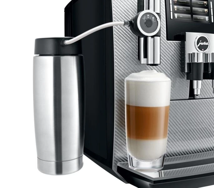 JURA melkhouder heeft een inhoud van 0,6L met een isolerende werking. Door de dubbelwandige RVS uitvoering is de melkhouder in staat om koude melk 8 uur koel te houden. Het is een zeer goed alternatief voor het melkpak.